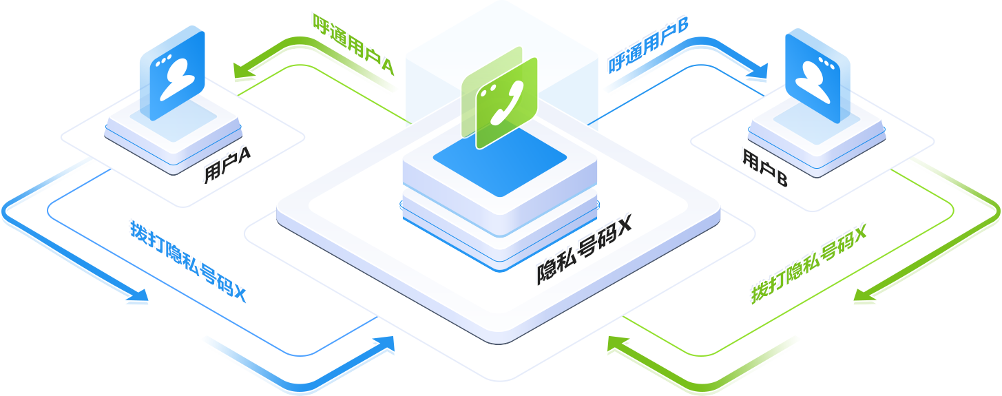 为了保护一对一专属服务场景中的用户A,服务方B的隐私,即B拨打X可联系A。常用于网约车、物流、外卖等O2O服务场景